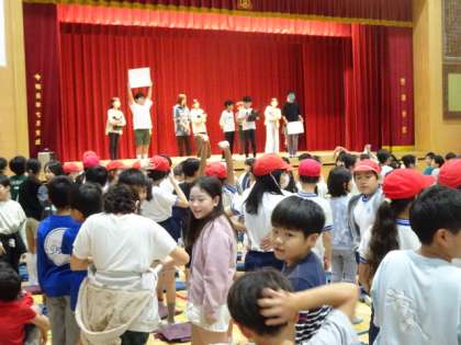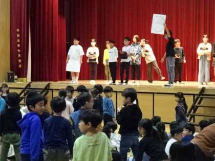 今日は、前期集会員の企画の最後の児童集会でした。体育館で全校が集まって先生〇×クイズをしました。前回に引き続き、全校そろっての児童集会。今日は雨のために校庭から体育館に場所を変更しましたが、集会員の進行で楽しくクイズを行うことができました。後期の自走集会も楽しみです。