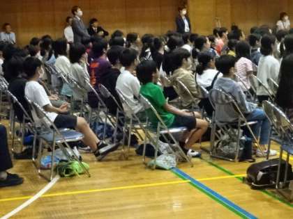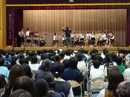 富士の学び舎の富士中学校で学び舎の3小学校の6年生、その保護者対象の説明会がありました。みんなで歩いて富士中学校に行き、中学校の授業の様子を見させていただいたり、吹奏楽部の演奏を聴かせていただきました。生徒会による中学校の行事や委員会、部活動の説明も真剣に聞いていました。中学校3年生が作成したSDGsのカルタもプレゼントされました。半年後から始まる中学校生活への期待が膨らんだようです。富士中学校のみなさん、ありがとうございました。