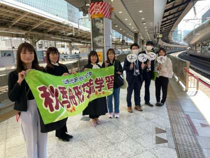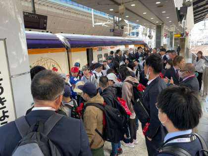 舟形の皆さんが新幹線で東京駅に到着しました。みんな元気そうです。これから新宿駅に向かいます。