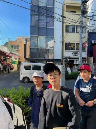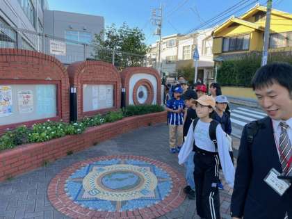歓迎のポスターを見つけたり、お出迎えしてくださっている保護者の方に手を降りながら歩いて代沢小を目指しています。
