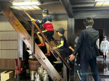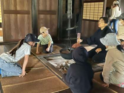 3組は、自由見学です。民家の2階に上がったり、好きな場所を自由に見たりしています。どのクラスも20分ずつ同じプログラムを経験します。