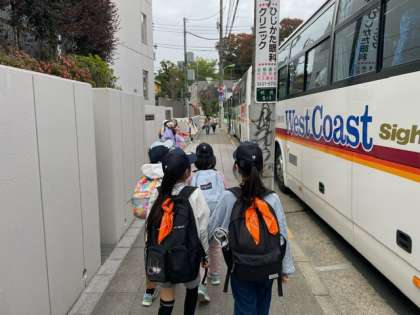 世田谷郷土資料室の見学を終えて、世田谷通り、環七、梅丘通りを通って学校に到着。予定より早く到着しました。見るだけでなく体験もあり学びの多い社会科見学になりました。お家でもお話を聞いてあげてください。さようなら。