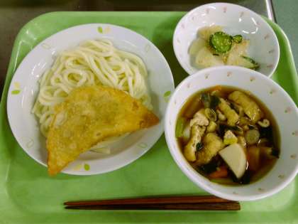 けんちんうどん 牛乳 ポテトのカリッと揚げ 大根のごま風味