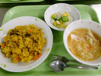 ツナピラフ 牛乳 トマトとたまごのスープ