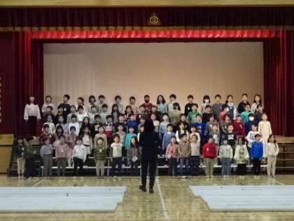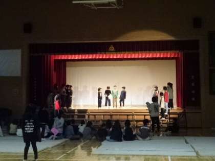 学芸会の練習が進んでいます。写真は1年生と5年生です。みんなで協力して練習しています。