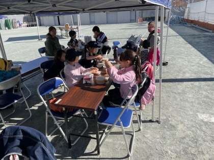 スタンプラリーの後は、みんなで協力しての「バケツリレーゲーム」をしました。3つのグループに分かれての体験でしたが、みん名で協力して水を運びました。バケツリレーの後は、保存食の試食を兼ねた昼食を取りました、アルファー米のカレーライスも美味しくいただきました。子どもたちにとって良い経験となりました。企画・運営していただきました青少年地区委員会の皆様、まちづくりセンターの民様、関係の皆様、ありがとうございました。