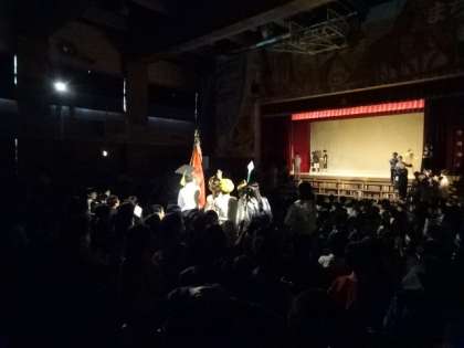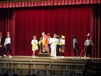 プログラム4番、4年生の「はだかの王様」です。舞台だけでなく客席いっぱい使った演技にもご注目。