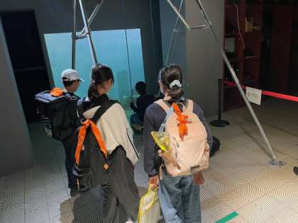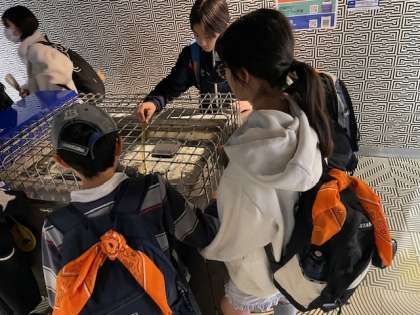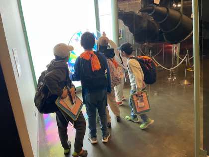 お弁当を終えて班でそろって見学です。ほかの学校の人もたくさんいます。安全に楽しく見学しましょう。