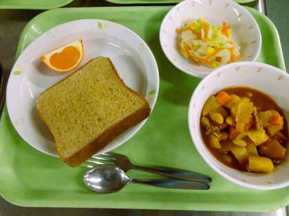 メープルシロップは、さとうかえで、という木の樹液を煮詰めて作る甘味料です。独特の風味があるシロップでホットケーキやワッフルにかけて食べたり、お菓子の原料として有名です。今日は、食物繊維が多く含まれている胚芽食パンにメープルシロップバターを塗ってオーブンで焼きました。香りを楽しんでいただきましょう。