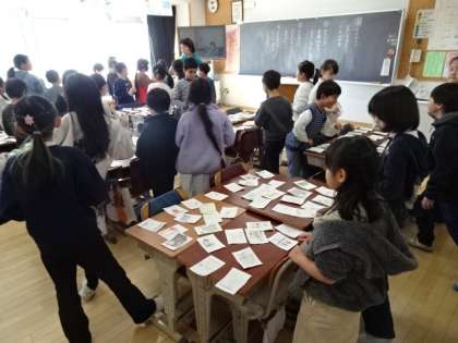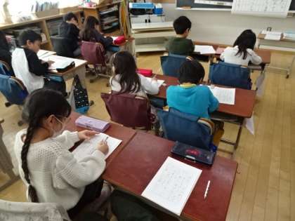 2週間ぶりの教室では、係を決めたり、カルタをしたり、書初めをしたりと学期初めの取り組みが行われています。友達と協力して取り組んでいます。