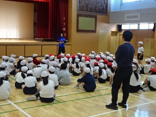 北京五輪で日本代表の女子バレーボール選手として活躍された櫻井由香選手をお迎えして、3年生みんなでバレーボールを楽しみました。ご講演では「仲間を大切にすること」「夢の実現のために言葉を大切にすること」をお話ししていただきました。体験学習では、仲間とボールをつなぐことをめあてにゲームに取り組みました。櫻井選手にも一緒にゲームに入ってもらい、子どもたちは大盛り上がり。貴重な思い出となりました。