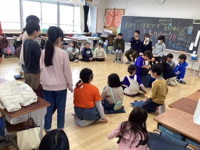 6年生を送る会に引き続き、せせらぎ班お別れ会を行いました。1年生、楽しい遊びを考え活動をリードしてきてくれた6年生に対して5年生を中心に感謝の気持ちを伝えています。1年間、お世話になりました。