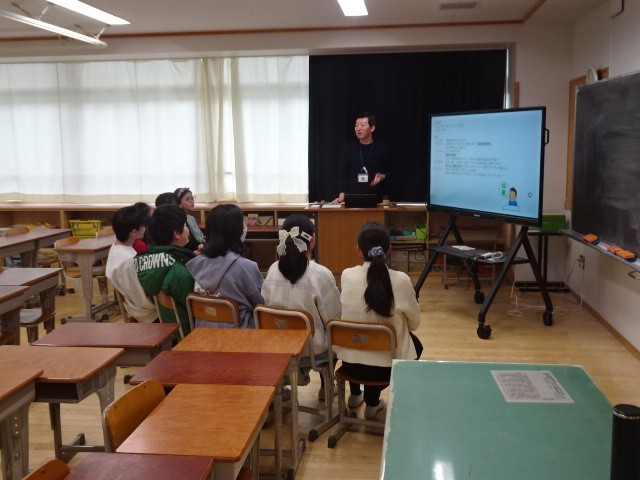 6年生の教室だけでなく、特別教室も使って少人数で話を聞けるようにしています。