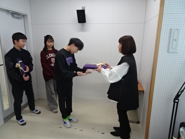 3月25日に卒業式を迎える6年生。今日の児童朝会で、山崎小の伝統工芸室で一人一人漉いた和紙の卒業証書を入れる卒業証書フォルダーを卒業記念品として膳場PTA会長からいただきました。卒業式でしっかりと受け取れるよう練習も頑張っていきましょう。残場PTA会長、ありがとうございました。