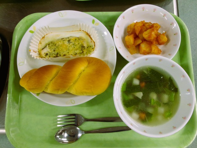 今日の魚のガーリック焼き、何という魚かわかりますか。給食では、よく使われる まだら です。良質のたんぱく質を含んでいるので、みなさんのように体が大きく成長する時期に食べるとよい魚です。どんな魚なのか、また、どんな食品に加工されているでしょうか。自分で調べてみましょう。