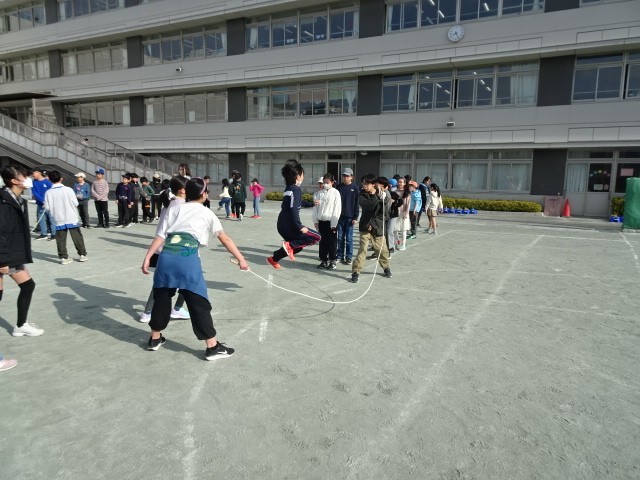 朝のランランタイムで、5・6年生が長縄の記録会を行いました。6年生にとっては小学校最後の記録会でした。最後までみんなで協力して長縄に取り組む姿がみられました。5年生は、来年度も頑張って取り組んでいきましょう。
