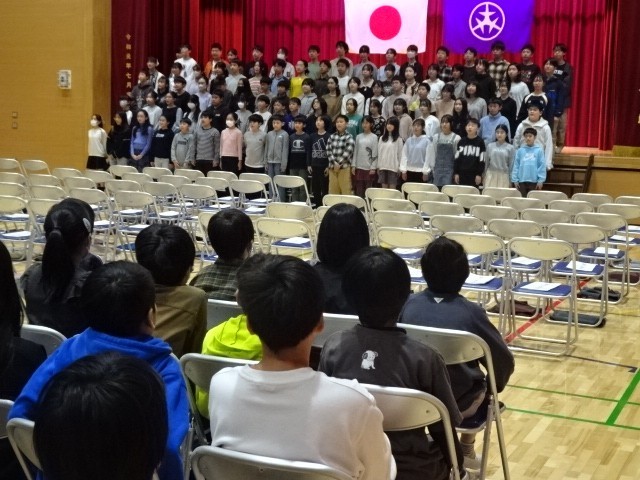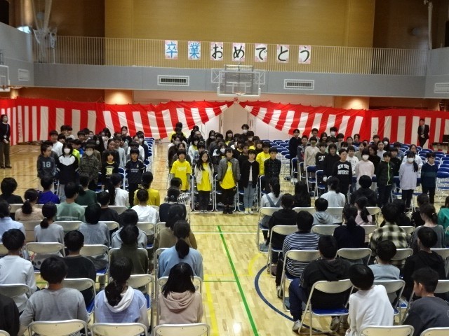 最後の給食の後、5・6年生は残って卒業式の予行練習を行いました。卒業式に参列しない5年生は、今日が最後の6年生の卒業練習の姿をみる機会となります。1年後の自分の姿も想像しながら、6年生の動きをしっかりと見ていました。6年生も始めた多くの人ないる中での練習の機会となりましたが、これまでの練習の成果をしっかりと発揮していました。予行練習の後には、5年生から6年生への感謝のメッセージが伝えられました。6年生から5年生へ代沢小の伝統が受け継がれていく様子が伝わる温かいひと時となりました。25日の卒業式には、保護者の前で成長した姿をしっかりと披露しましょう。