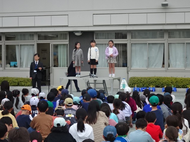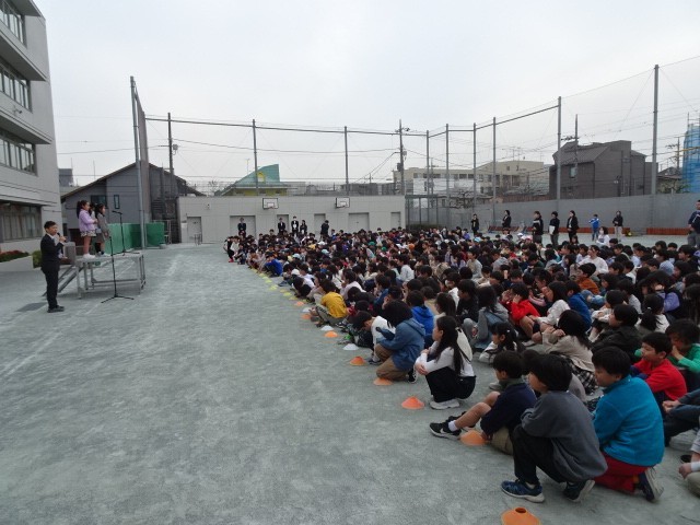 修了式の代表のことばは、1年生です。4月に入学して6年生のお世話を受けていた1年生も、もう立派に成長して4月からは、お兄さん、お姉さんになります。代表の3名のあいさつもとても立派でした。全校で歌う校歌も素晴らしかったです。修了式の後、春休みの生活についての安藤先生からのお話、3月で代沢小を去られる先生方の紹介とお別れの言葉がありました。修了式から最後まで長い時間になりましたが。最後まで集中してお話が聞けていました。