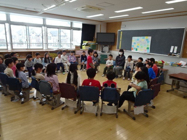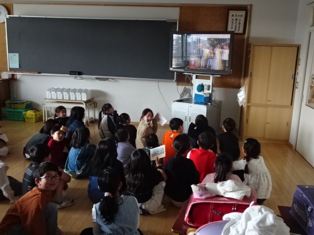 1年生から5年生は、今日が最後の登校日。最後にみんなで活動していいます。1年間をビデオで振り返っているクラスもありました。