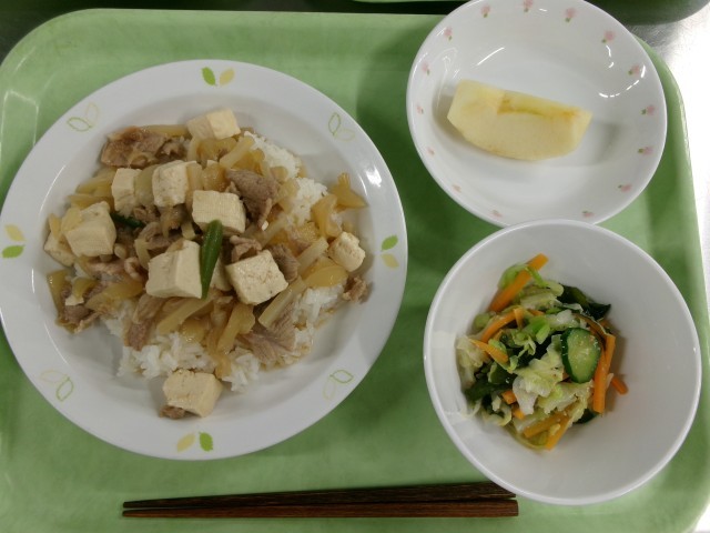 豚すき丼 牛乳 春野菜とわかめのサラダ