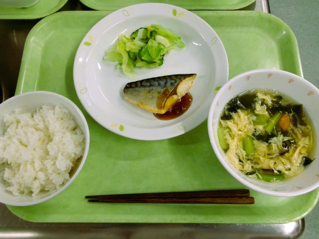 今日のごはんは、有機栽培のお米です。有機農産物は、決められた期間、農薬や化学肥料を使わなかった場所で栽培するなど、日本農林規格の基準に沿って生産された農産物です。有機JASマークをつけて販売されています。有機農産物についての説明資料を配膳室前に貼っています。どんなものを有機農産物というのか、読んでみてください。また、本日の魚(さば)の写真入りポスターも配膳室前に掲示しています。