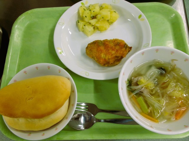 ミルクパン 牛乳 魚のエスカベージュ 粉ふきいも ベーコンと白菜のスープ