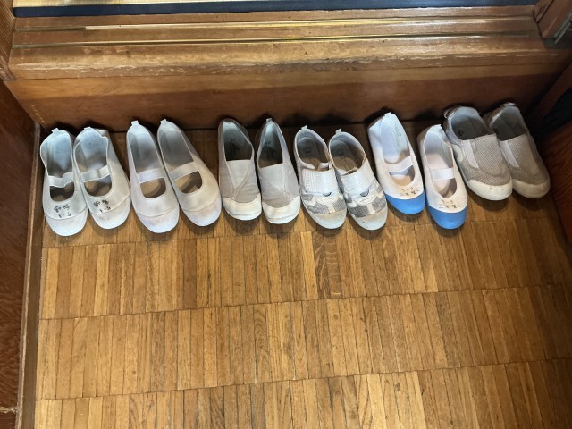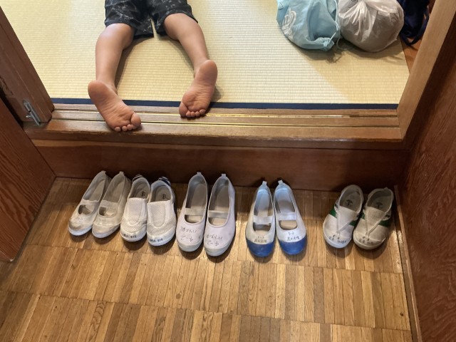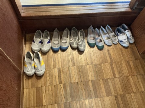 部屋の前で脱いだ上履きや靴もきれいに揃えられています。
