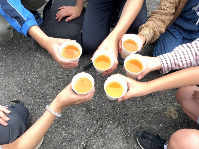 村めぐりでは、川場村の様々な場所を回り、宮田果樹園でりんご栽培の話を聞き、りんごジュースを飲ませていただきました。