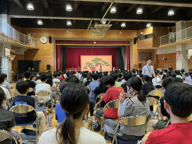 6年生は太子堂小学校まで来て、古典芸能鑑賞教室に来ました。