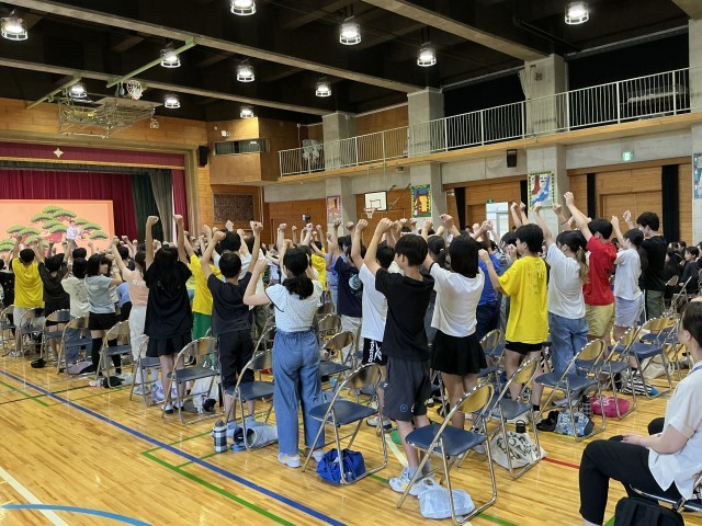 狂言を鑑賞した後、ワークショップで狂言の表現をやってみました。