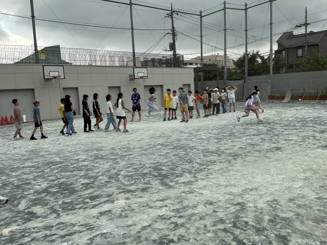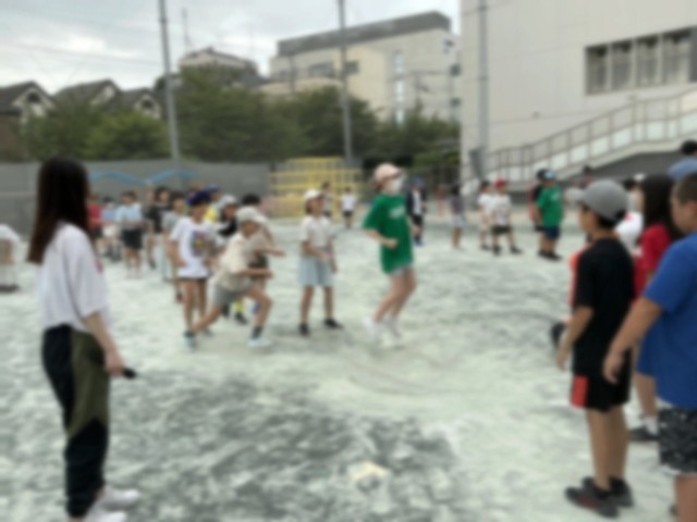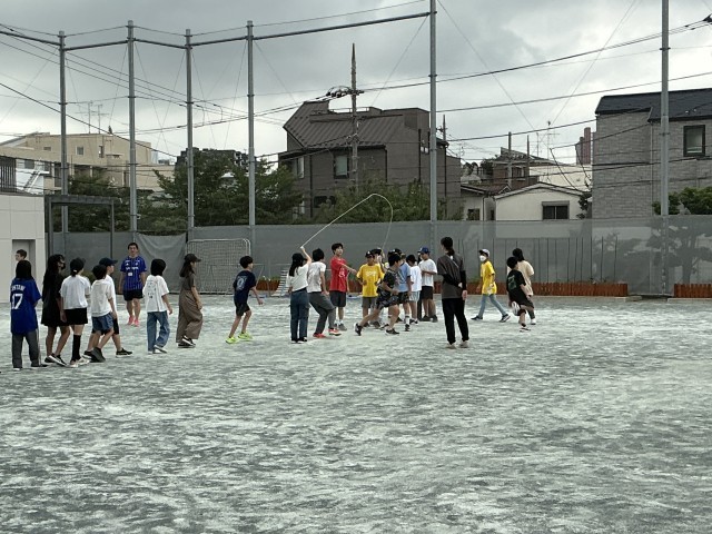 雲のおかげで、暑さが少し和らいでいる時間にランランタイム長縄ができました。