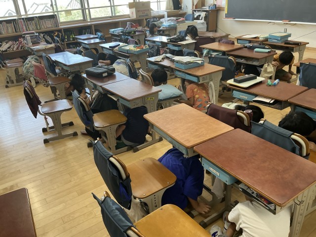 自分のクラスではなく、近くの教室に避難した児童もいました。