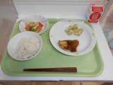 ●本日の献立● 麦ごはん 牛乳 魚のカレーあげ ごま酢かけ じゃがいものそぼろ...