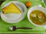 〇本日の献立〇 クロックムッシュ 牛乳 ABCスープ くだもの(みかん 特別栽培...