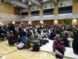 明日の児童鑑賞日、低学年はマットで、3・4年生は自分の椅子で、5・6年生はパイプ...