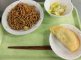 〇本日の献立〇 ソース焼きそば 牛乳 ジャンボぎょうざ 辣白菜 〇主な食材の産...