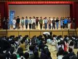 前期の代表委員、委員会の委員長が全校の前で、抱負や活動の紹介をしました。体育館で...