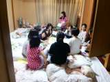 消灯前の少しの時間も惜しんで、みんなで楽しんでます。部屋の入り口にはなぜかお札が...