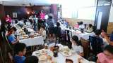 江戸村の食堂で、カレーをいただきます。みんな、江戸村堪能したようです。