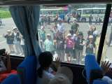 スクールバスで新庄駅に向かいます。舟形小の皆さんがバスに向かって手を振ってくれて...