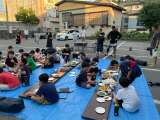 3カ所めは、中央公民館です。公民館裏の駐車場で夕食を食べています。焼鳥、焼きそば...