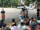 日光江戸村での朝食は、カレーライスとバナナです。日光林間学園、みんなで食べる最後...
