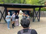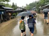 お昼を食べている途中で雨が降り始めました。食事場所からバスまで傘をさして向かいま...