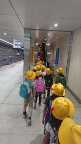 電車の中は、とってもいい子にしています。さすが、代沢小の子どもたちです。