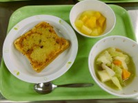 〇本日の献立〇ミートチーズサンド 牛乳 ポトフ フルーツポンチ ミートチーズサン...