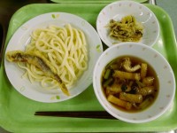 〇本日の献立〇きつねうどん 牛乳 天ぷら きゃべつの乾物あえ きつねうどんは、大...