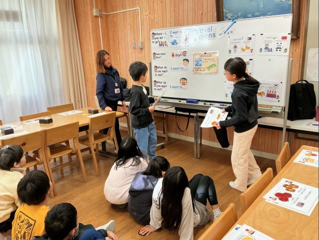 学習した英語のフレーズを使って、「買い物」「旅行計画」「道案内」の3つの活動を行いました。
