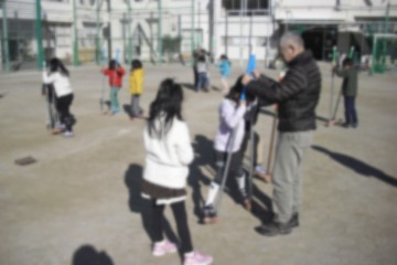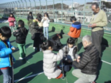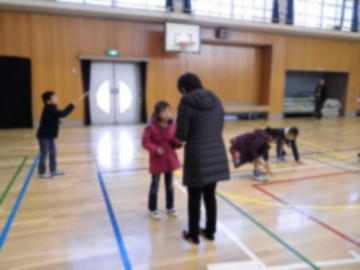 11日に昔遊びを地域の方に教わりました。羽根つき、竹馬、こま、おはじき、あやとり、お手玉、めんこの7種類の遊びを経験しました。遊びのコツを上手に教えて下さったので、みんな少しの時間でもできるようになり、にこにこと嬉しそうでした。
