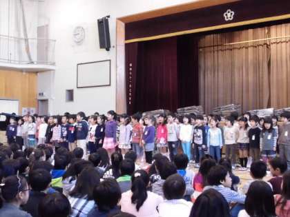 元気に歌を歌い、二子玉川小学校の一員として仲間入りしました。