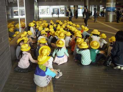 駅までは先日の交通安全教室で学んだように、列になって歩いたり、横断歩道で手を挙げて渡ったりすることができました。